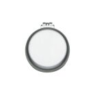 Escova com espelho redonda em plástico resistente. Parte superior plana e parte inferior emborracha com relevo, estando aberta a peça basta empurrar a parte emborrachada(lado de fora) para poder utilizar a escova.